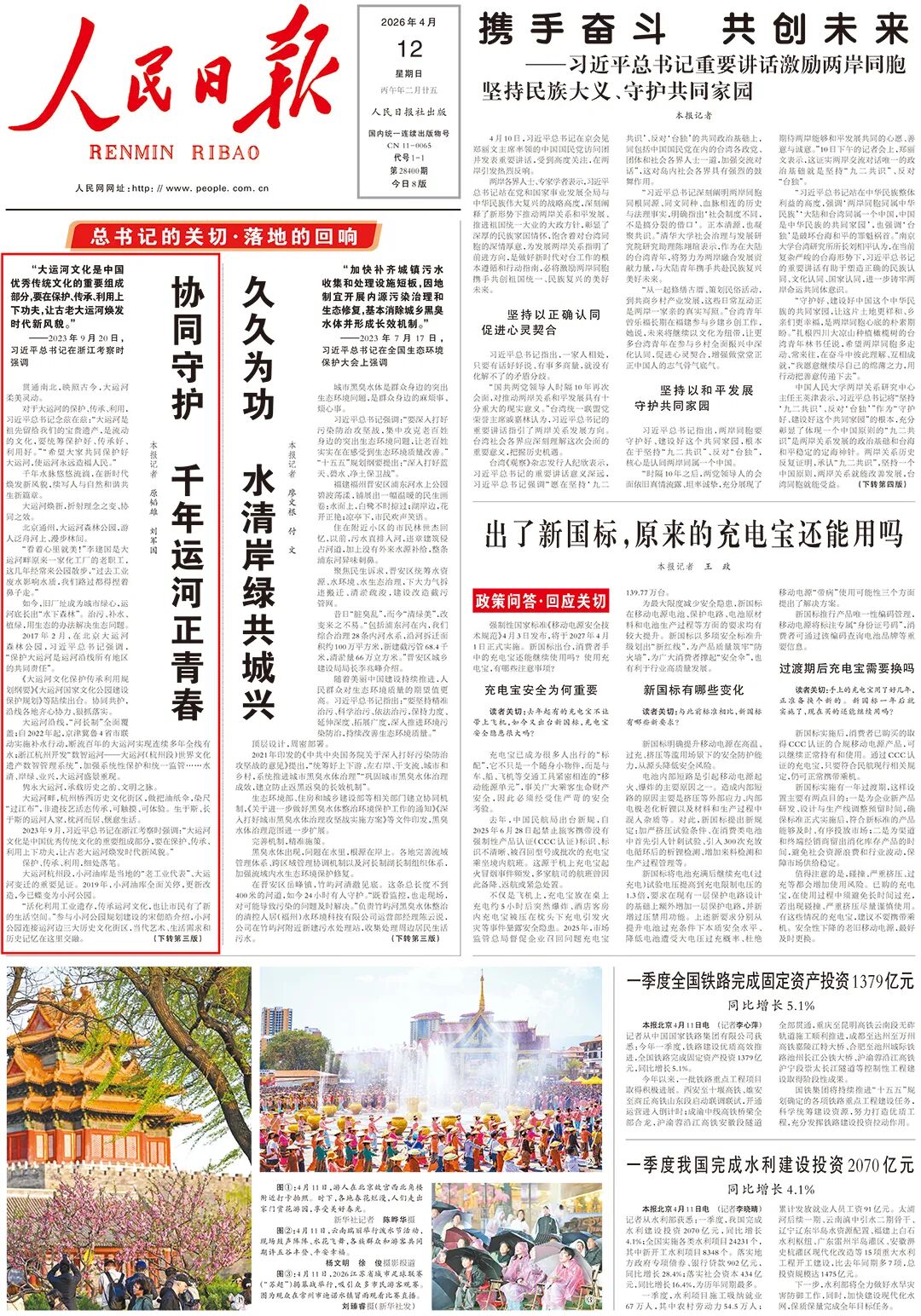 人民日?qǐng)?bào)頭版頭條關(guān)注濟(jì)寧港航,讓物流運(yùn)輸更通暢、更經(jīng)濟(jì) 2026-4-12