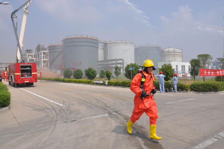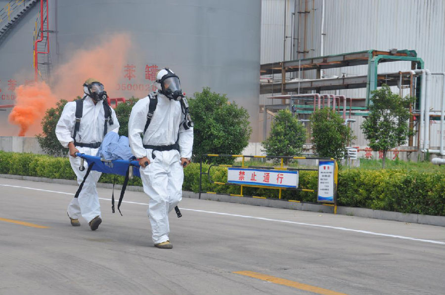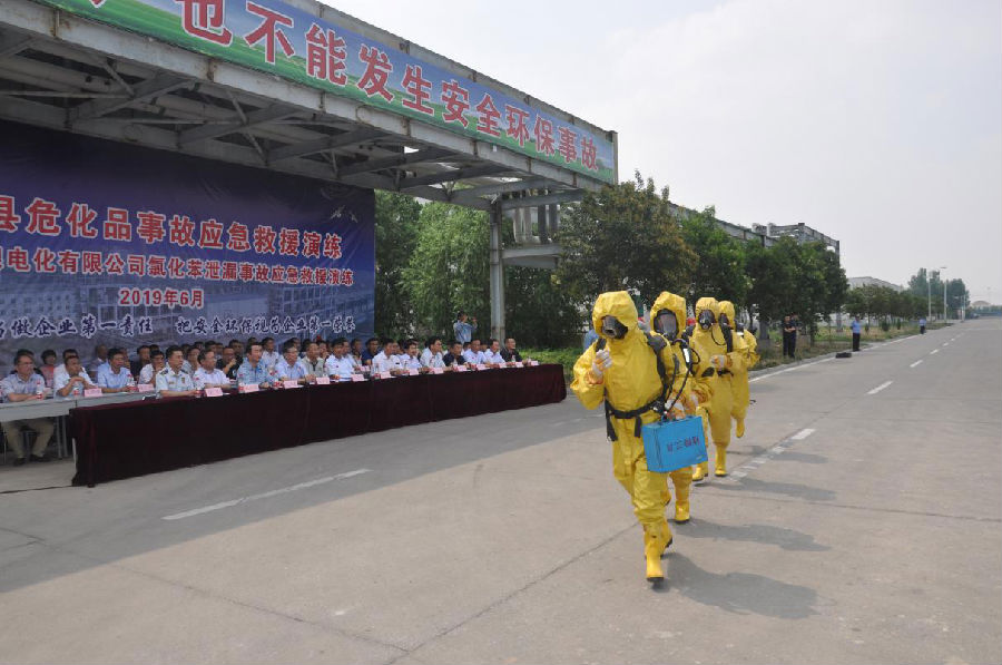 公司氯化苯泄漏事故應(yīng)急救援演練掠影