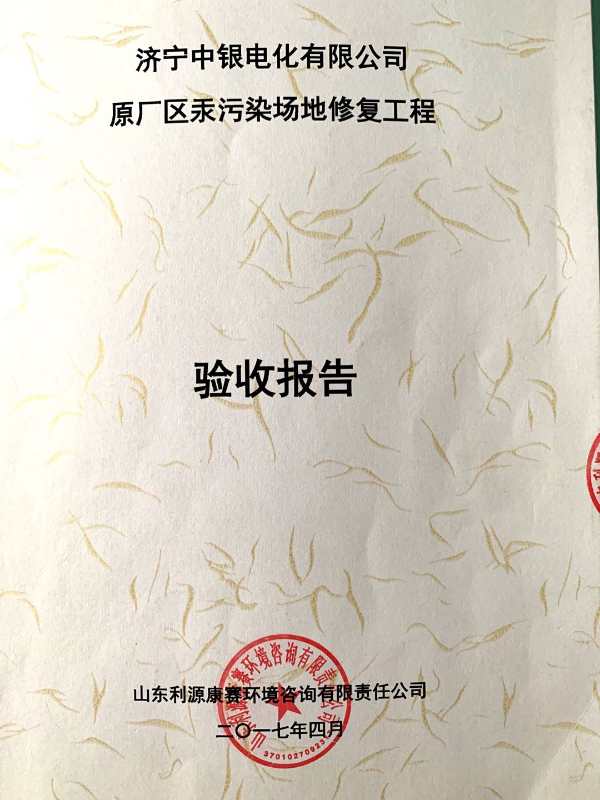 關(guān)于濟寧中銀電化有限公司老廠區(qū)汞污染場地修復(fù)工程驗收報告的公示 2019-12-23